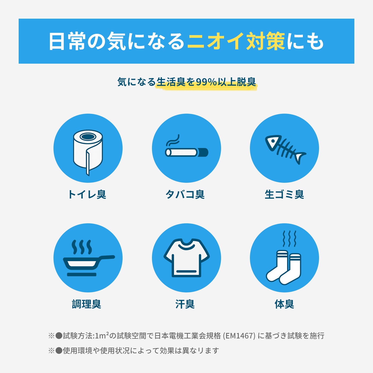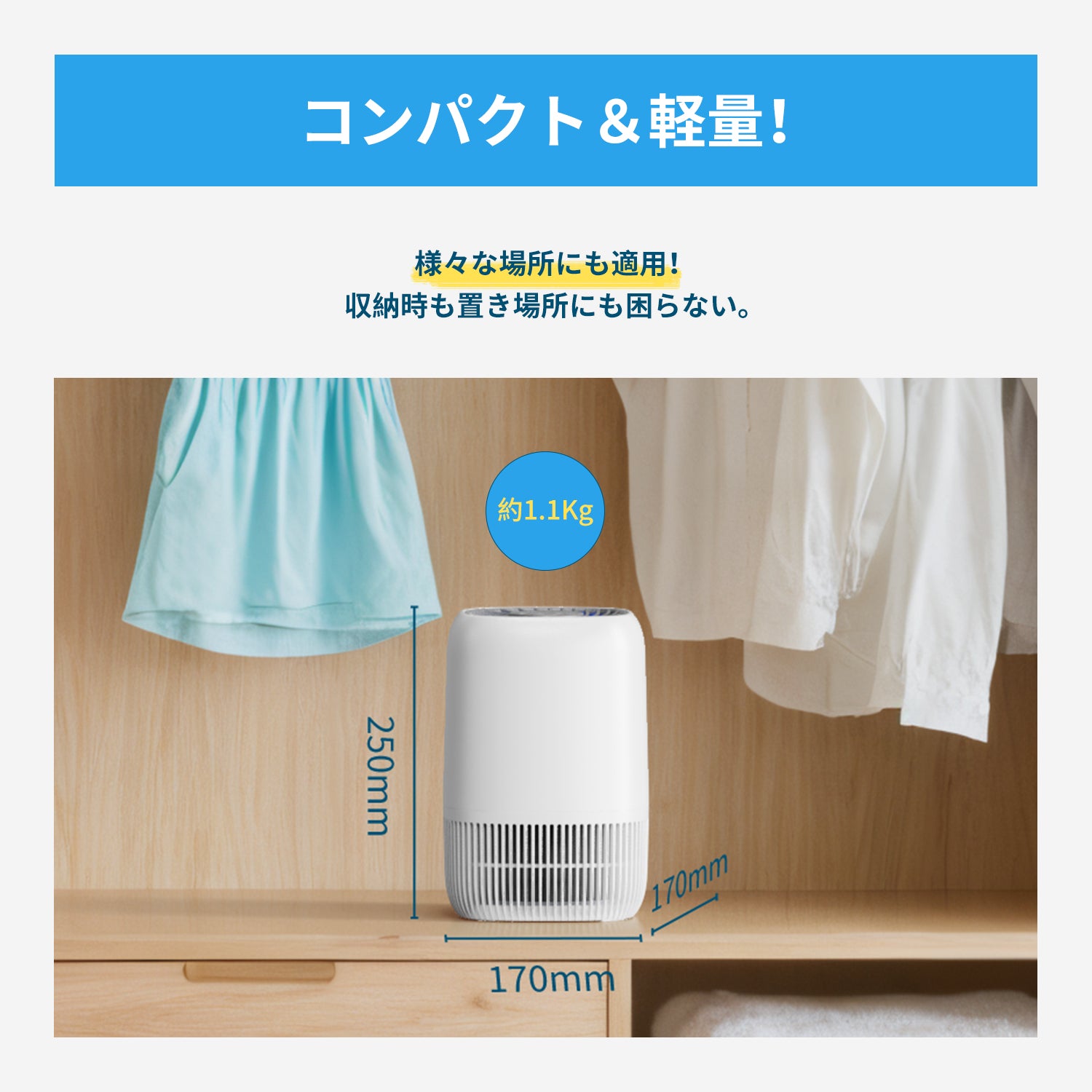 ★本製品の本体重量はわずか0.9KGで、女性でも簡単に持ち運べるコンパクトなサイズです。場所を選ばずに置けるコンパクトなデザインながら、移動も便利で、寝室、リビング、書斎、キッチンなど、さまざまな場所で活躍します。さらに、消費電力18Wで1日8時間使用しても、電気代が3.9円未満で、省エネ効果も抜群です。1台で除菌、脱臭、ウイルス濾過など、さまざまな用途に対応します。