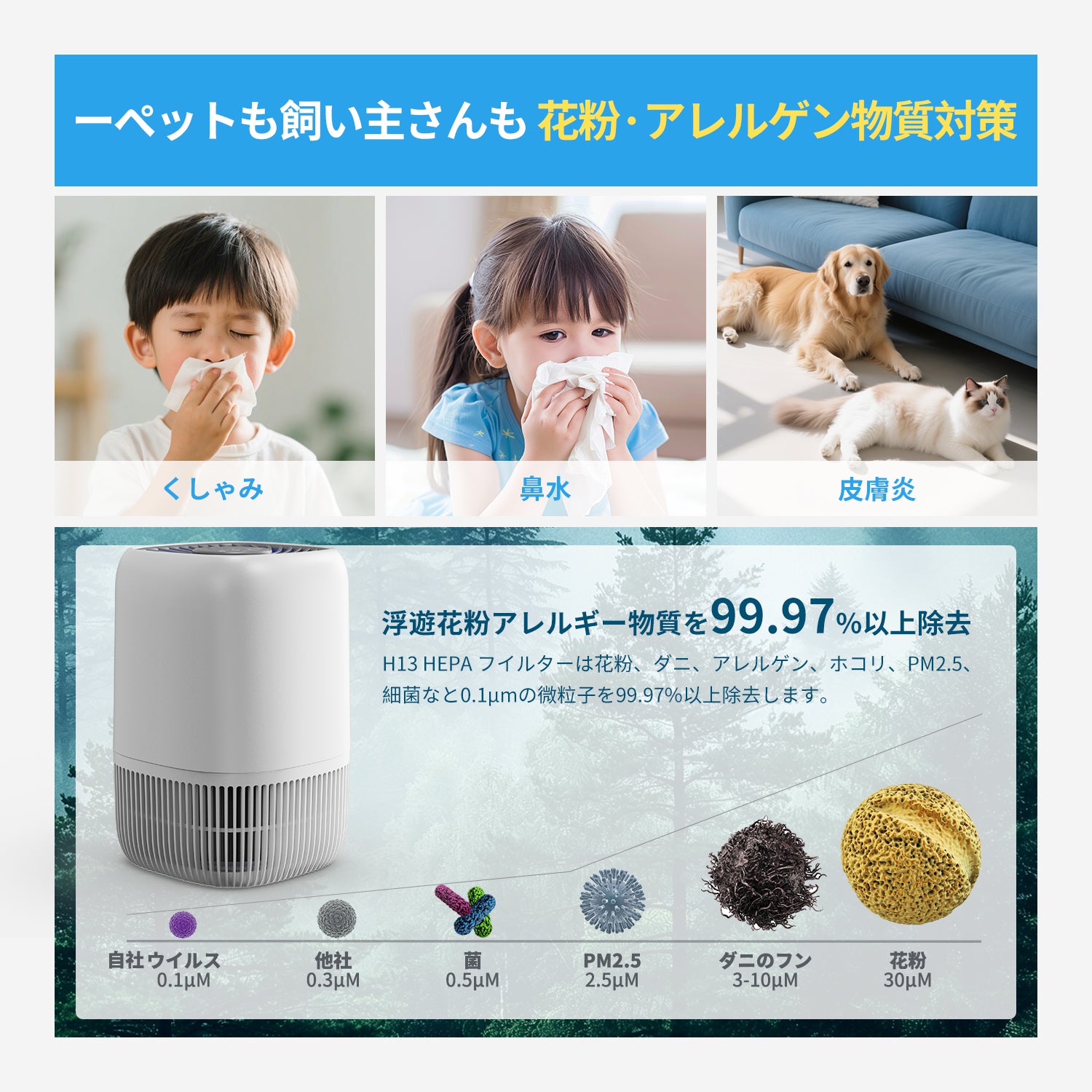 ★CADR 120立方メートル/hの高い浄化能力を誇り、12畳のお部屋なら約30分で空気がきれいになります。6畳の寝室のみならず、書斎、リビング、キッチンなど、さまざまな場所でも大活躍できます。搭載された高性能フィルターは細菌、ダニ、アレルゲン、ほこり、PM2.5などの0.3μmの微粒子を99.97%以上除去します。強吸引力のフィルターが採用され、埃やたばこ臭、生ゴミ臭などを抜き去り、細菌繁殖も抑えられます。